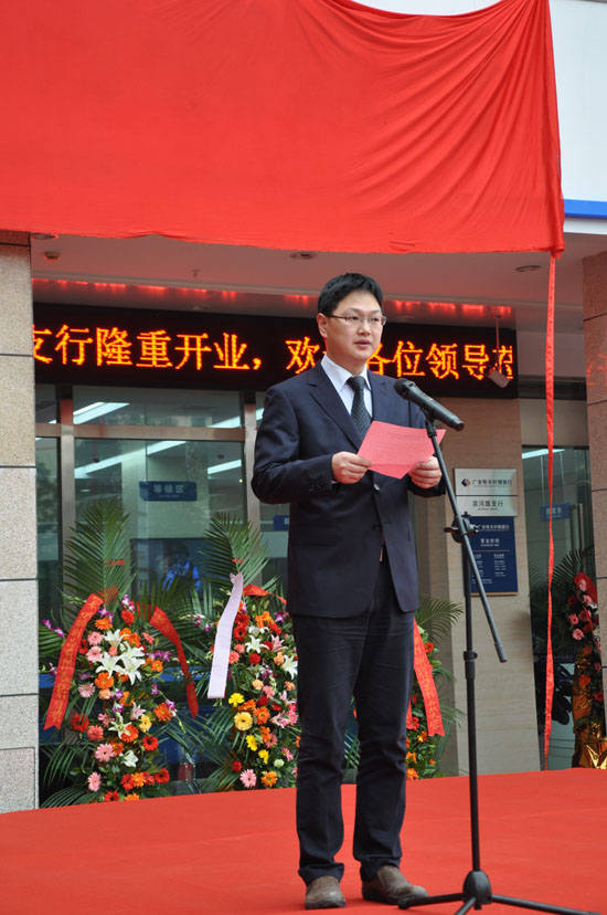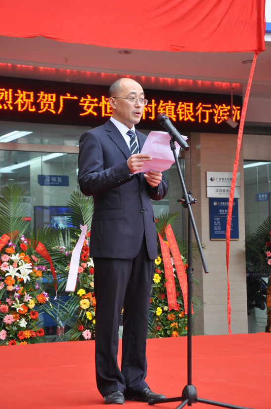图为广安恒丰村镇银行滨河路支行行长李斌致辞