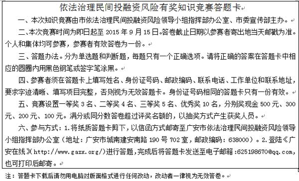 广安依法治理民间投融资风险有奖知识竞赛 最高奖500元(图)(1)