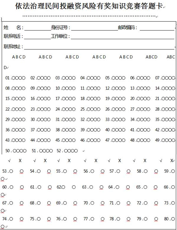依法治理民间投融资风险有奖知识竞赛答题卡下载
