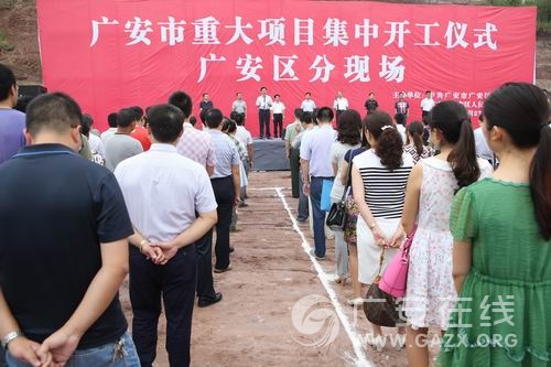 8月27日,广安区重大项目集中开工仪式在临港都市产业园园区举行,该区共集中开工临港都市产业园标准厂房、广安区民政“幸福家园”综合体等重大项目10个,总投资近20亿元,主要包括2个基础设施类项目、2个社会事业类项目、4个农林水利类项目、2个商业房产类项目。广安市政协副主席周派国出席开工仪式并宣布开工。