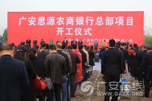 图为11月16日,投资1.5亿元的广安思源农商银行总部建设开工仪式在官盛新区隆重举行