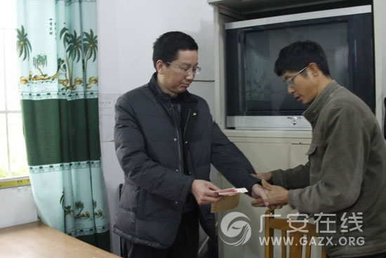 1月19日,广安市公路管理处直属养护段工会主席杜先卫带领段精准扶贫小组成员,深入广安市前锋区观塘镇双碑村,全面摸清帮扶对象的基本情况和面临的困难,并为他们送去了扶贫金。
