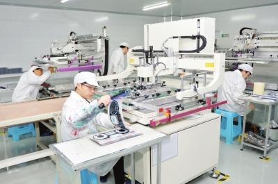 图为经开区新引进投产的冠华科技生产车间一角.
