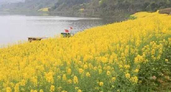 化龙乡渠江沿岸成片的油菜花盛开。