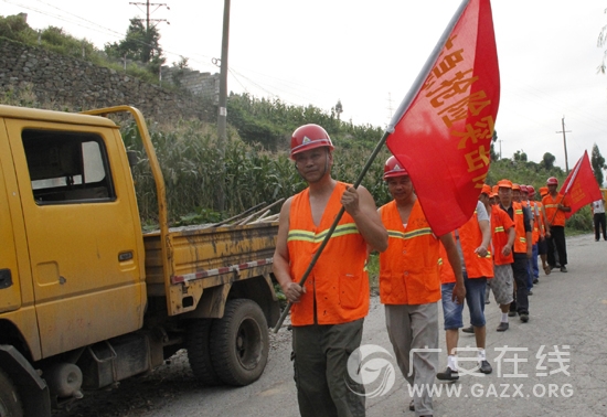 “报告,我班管养的三桂路K3+900处山体滑坡,造成大量土石方堆积在公路上,阻断了交通,情况危急,我班已设置临时的警示标志(筒),安排专人警戒,请求段调派应急抢险突击队抢险施救”。7月27日早上6时,广安市公路管理处直属养护段养护股长杜勇接到桂兴道班班长阳仿献的报告后,立即向段应急抢险指挥长杜先卫进行了报告。