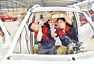 利爵公司员工在生产新能源电动汽车。