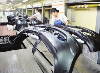 湘邻科技员工在生产汽车保险杠。