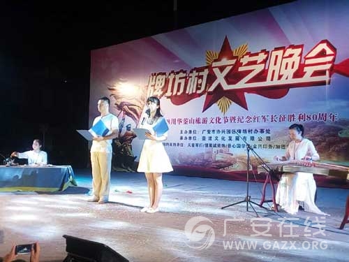 8月13日晚,协兴园区牌坊村办事处在牌坊新村广场举行以“2016四川华蓥山旅游文化节暨纪念红军长征胜利80周年”为主题的牌坊村文艺晚会,近百名村民以及辖区单位文艺爱好者参与演出,村民自编、自导、自演的节目,吸引了上千人前来观看。
