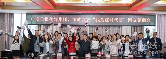 10月11日下午,广安日报传媒集团、市旅发委联合举办“我为红马代言”网友见面会。通过“天下广安”APP投票产生的“红马”代言人、志愿者等50名网友参加见面活动。