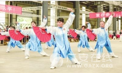 据了解,本次赛事分团体赛和个人赛,设24式、42式、杨氏太极拳竞赛套路,32式、42式太极剑竞赛套路和太极功夫扇等6个项目。经过激烈角逐,在团体赛中,广安区、邻水县、岳池县、武胜县、前锋区代表队获得42式太极拳优胜奖;岳池县、邻水县、广安区、武胜县代表队获得42式太极剑优胜奖;广安区、邻水县、岳池县、前锋区代表队获太极功夫扇优胜奖。在个人赛中,邻水县孟建琼、广安区何超华、广安区廖顺梅分别获得女子组24式太极拳、杨氏太极拳、32式太极剑第一名;广安区胡年龙、邻水县杨晓刚分别获得男子组杨氏太极拳、32式太极剑第一名。体育道德风尚奖由广安供电公司、华蓥市、广安市级机关代表队获得。 (刘伟 记者 刘秦君 文/图)