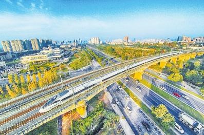 成渝高铁动车组在天府大地疾驰。四川日报记者何海洋摄