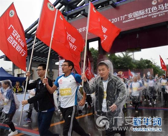 新华网体育广安10月15日电(邹苏)15日,2017广安农信•韵动中国广安国际红色马拉松赛(以下简称“广安红马”)正式开跑。早晨5点,广安农信跑团就从广安的各区县出发赶往出发点。