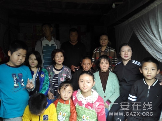 “感谢您们这些好心人的帮助,你们是我们家的恩人,我们会记得的,孩子们也会永远记到!”10月5日,广安市义务工作者联合会工作人员王艳玲、市国土资源局工会阴晓芹等一行10余名爱心人士来到广安区兴坪镇晓钟村6组张小余姐妹家,为她们送去家具、棉被、衣物以及牛奶月饼等物品。张小余一家感动不已,其长年患病的母亲朱四妹对大家连声说着感激的话。