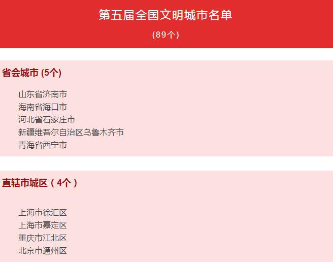 第五届全国文明城市名单和