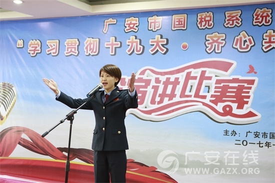 11月2日,广安市国税局举办以“学习贯彻十九大·齐心共筑中国梦”为主题的演讲比赛,掀起学习贯彻党的十九大热潮。来自全市国税系统12名选手参赛。