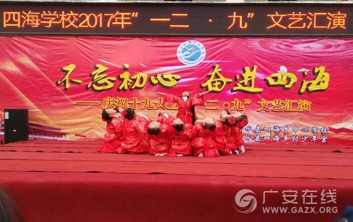 近日,邻水县四海乡中心学校在校内操场隆重举行庆“十九大”暨纪念一二•九活动,本次活动的主题为“不忘初心,奋进四海”。