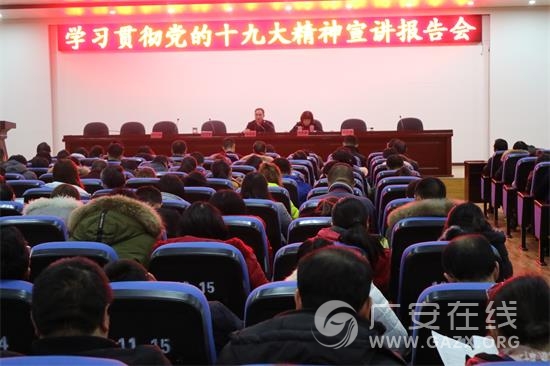 宣讲会上,徐祖廷重点从党的十九大的主题和主要成果、习近平新时代中国特色社会主义思想、“两个一百年”奋斗目标的战略部署、在大会精神与教育实际上下功夫等十个方面,深入浅出地解读了党的十九大精神要义,并结合广安教育发展实际,阐述了深入学习贯彻党的十九大精神的意义和目的,指明了学习贯彻的路径和方法。