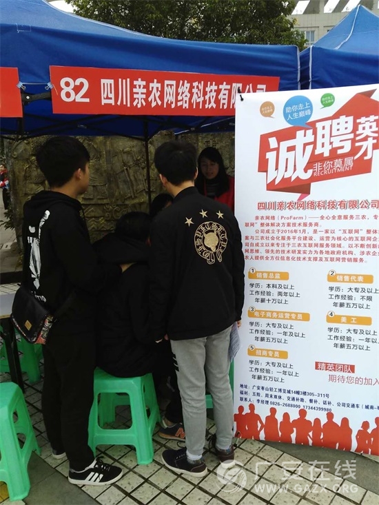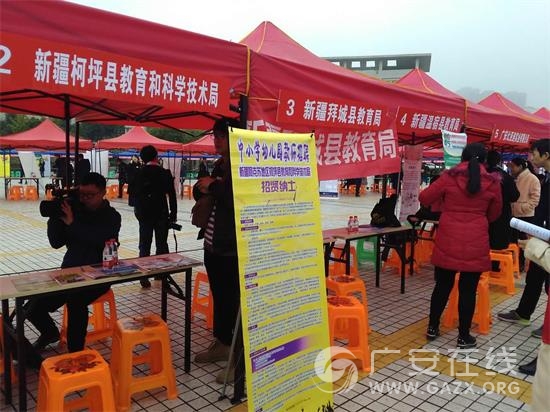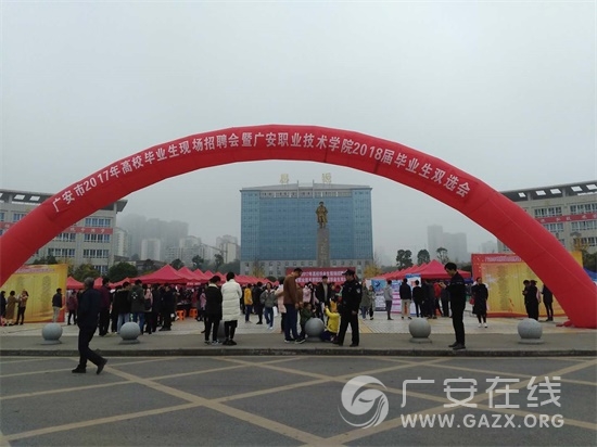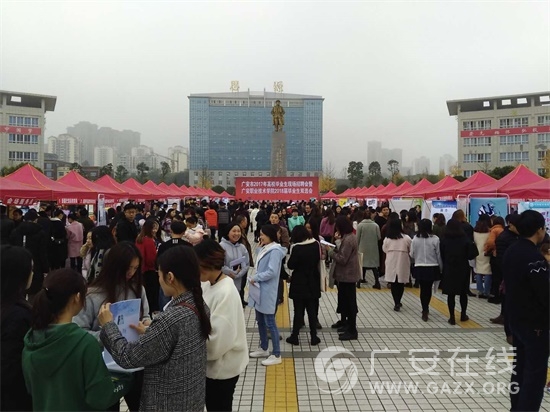 12月2日,广安市2017年高校毕业生现场招聘会暨广安职业技术学院2018届毕业生双选会在广安职业技术学院举行。230多家来自新疆、上海、重庆、成都、南充以及广安本地,涉及工程建筑、计算机、市场营销、教育、医疗等多个行业领域的用人单位前来选才。