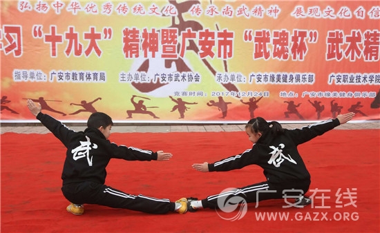 2017年12月24日上午,广安市青少年武术训练中心学员在广安某武术俱乐部参加“武魂杯”武术精英赛。