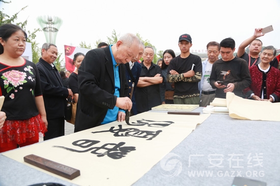 9月26日上午,以“喜迎十九大·翰墨颂盛世”为主题的川东北六市第九届老年书画联展开幕式在广安市民广场开展,共展出来自广安、南充、遂宁、广元、巴中、达州六市老年书画家的325件书画作品。本次书画联展的作品,展示了各位老干部深厚的文化底蕴和艺术修养,表达了老干部歌颂盛世、喜迎十九大的共同心声。