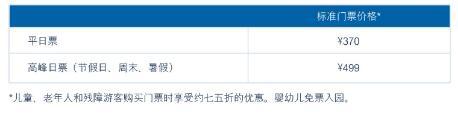 上海迪士尼乐园的平日门票价格为399元人民币。需求较高的高峰日(包括暑假、周末和大部分节假日)的门票价格为575元人民币。需求更高的两个假期高峰日(即春节和国庆节假日)的门票价格为665元人民币。