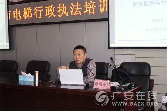 12月7日,市质监局举办全市特种设备(电梯)行政执法培训,邀请四川省特种设备检验研究院张明金主任授课。市质监局党组成员、副局长李裕在执法培训开班仪式上致辞。