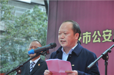 广安市公安局交警支队长邹勇讲话。
