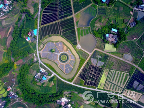 初夏时节,位于华蓥市禄市镇小驴山村错落有致、色彩斑斓的田畴,与纵横交织的道路、蜿蜒的小溪和星罗棋布的民居,构成了一幅迷人的田园水彩画。特别是田野中一座被小溪环绕的小岛,从空中鸟瞰,恰似大地之“心”。图为5月11日,在华蓥市禄市镇小驴山村航拍的似“心”形的小岛。(邱海鹰 摄)
