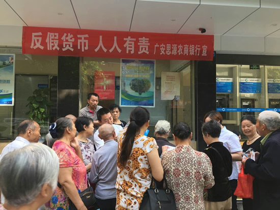 为全面做好2017年反假货币宣传工作,提升公众反假货币意识和能力,净化人民币流通环境,根据《广安思源农村商业银行股份有限公司2017年反假货币宣传月活动方案》安排,广安思源农商行于5月17日上午9:00-11:00,在所辖四个营业网点大厅外开展了以“反假货币 人人有责”为主题的集中宣传活动,得到了广大市民的热烈欢迎,取得了良好的宣传效果。