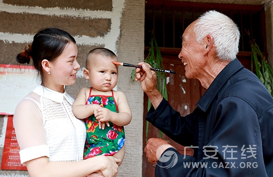 5月26日,华蓥市观音溪镇高坪村举行端午洗艾叶澡活动,村民用艾叶、菖蒲等熬制的水给小孩洗澡,再请村里德高望重的长者在小孩的脑门、耳朵等处点雄黄酒,寓意祈求孩子健康成长的心愿。