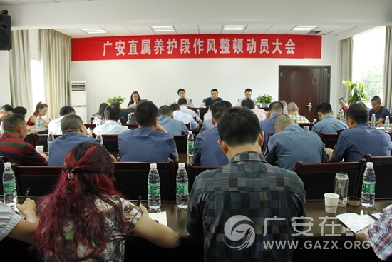 6月6日,广安市公路管理处直属养护段组织召开作风整顿动员大会。市交通运输局纪检组组长王伟、市公路管理处副处长戈晓琴到会作重要讲话。会议由市公路管理处副处长何鹏主持。直属养护段党支部副书记刘兴俊对作风整顿进行了安排部署。