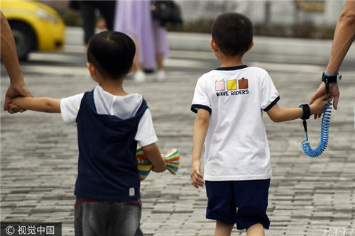 为防孩子走失 父亲“铐”着儿子去游玩(图)(1)