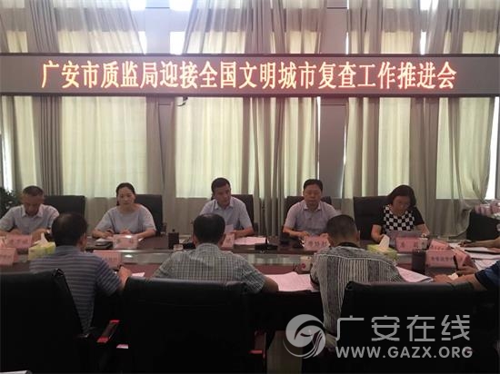 7月24日,广安市质监局召开迎接全国文明城市复查工作推进会,局党组书记、局长何斌主持会议并讲话,在家局领导,局机关各科室、各直属单位负责人参加会议。