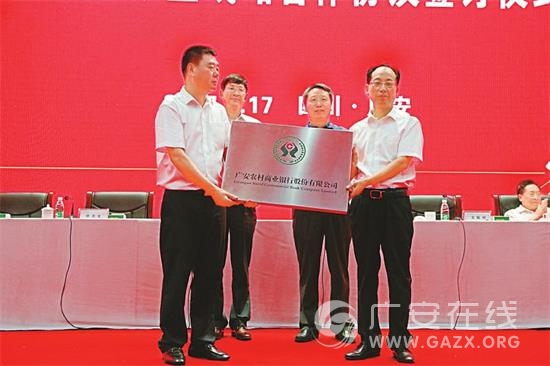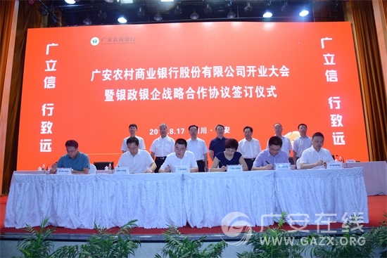 仪式上,省信用联社和广安市人民政府签署了银政战略合作协议,广安农商银行还与广安区、前锋区、广安经开区、枣山园区、协兴园区、广安金财集团、广安农业信贷担保公司等签订了战略合作协议。