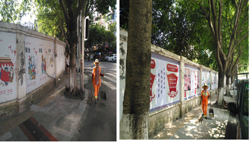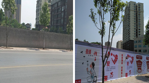 科贸片区旧城改造工程围挡公益广告整改前后对比图