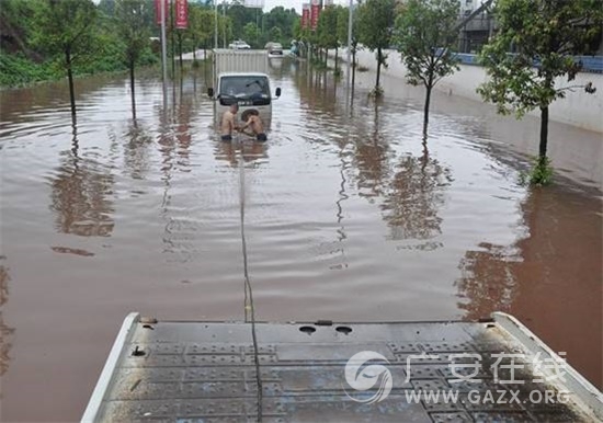 9月9日,武胜城区暴雨不停,导致部分路段积水成河。上午9时许,一名外地驾驶员因不熟悉路况,粗心大意冲进积水路段导致车辆发动机进水熄火,车辆陷入水中无法动弹。