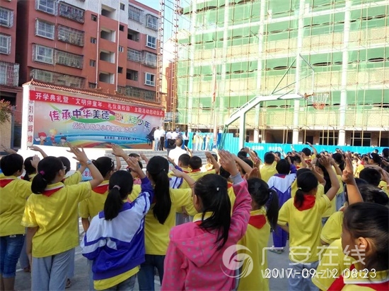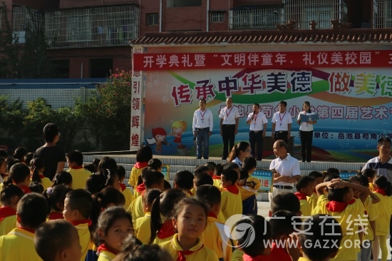 9月12日,岳池县苟角小学校在操场上举行了2017年开学典礼暨“文明伴童年、礼仪美校园”启动仪式。