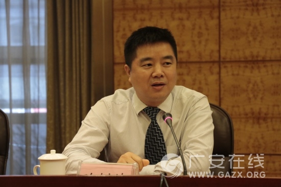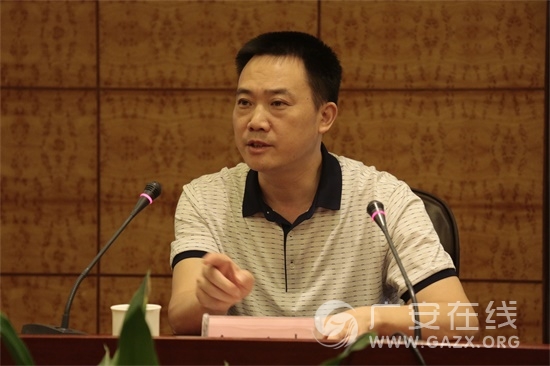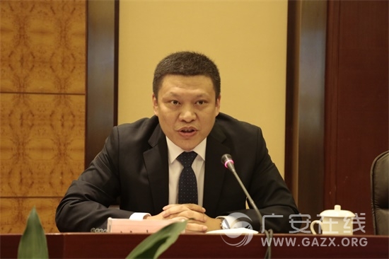 广安市工商业联合会主席何跃斌在签约仪式上讲话。