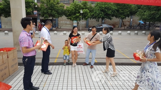校领导向老师们赠送鲜花。