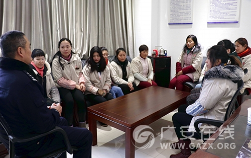 图为1月9日,华蓥市工业园区法治服务中心的民警在为员工普及法律知识。(杨天军 李春泉)