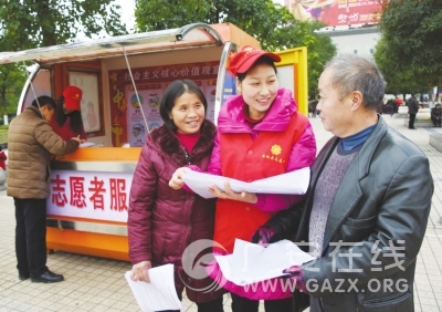 1月8日,志愿者向过往群众发放精神文明建设宣传资料。