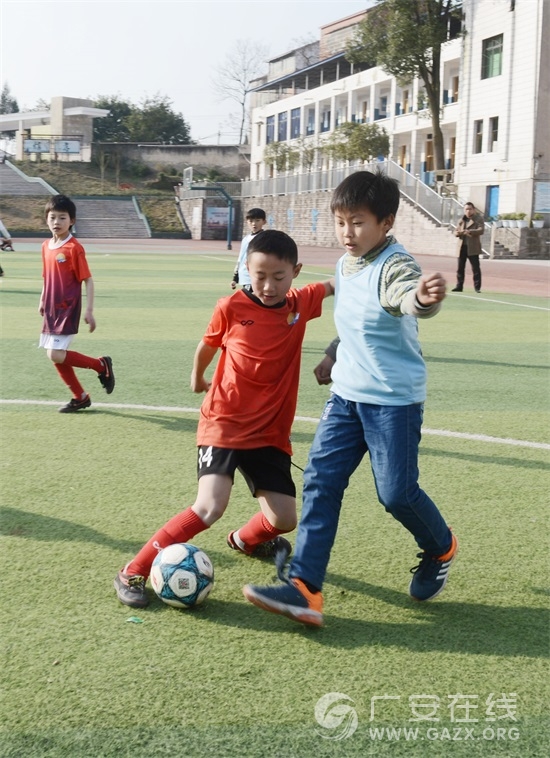1月10日下午,广安经开区护安小学与广安希贤学校两支少年足球队在护安小学校园举行足球比赛,在比赛中锻炼队伍,切磋球技,交流经验。近年来,广安市各中小学校通过开展“足球进校园”活动,培养孩子们对足球运动的兴趣,在提升学生身体素质的同时,充分展示足球的魅力,培养更多足球运动的后备人才和学生的团队协作精神。(袁明清 胡安强)