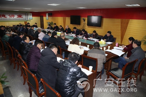 文建平要求,大家要认真研读报告本次全会的主题报告,学深悟透,做到入脑入心,指导实践。在2018年的工作中,我们要继续坚持以习近平新时代中国特色社会主义思想武装头脑,解放思想,力求突破,主动研究政策、主动作为、主动担当、对工作早谋划、早思考。新的一年,我们要尽最大努力抓好干部队伍建设,党风廉政建设和全区经济社会建设等工作,努力推动广安区各项事业再上新台阶。