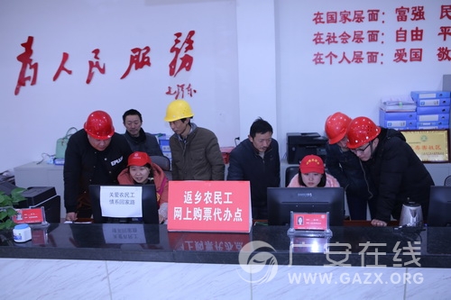 自1月3日,2018年春运火车票预售开始以来,针对辖区建筑企业多民工多的实际,为方便农民工购买火车票,四川省广安区中桥街道团委、妇委会组织青年志愿者、巾帼志愿者积极开展“关爱农民工 情暖回家路”志愿服务活动,采取在社区志愿服务站建立网络购票代办点、方式帮助返乡务工人员通过网络购买火车票。(廖小兵 蒋小华 吴潇)