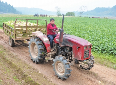 近日,武胜县礼安镇马鞍村村民驾驶农机在开厢、施底肥,准备播种蔬菜。