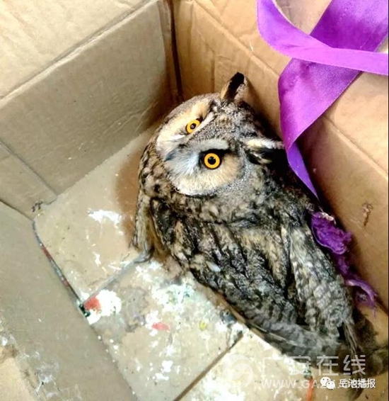 “警官,你好,这只猫头鹰是我在市场上买来的,请你们帮忙看看有没有受伤。”1月17日上午,一位市民抱着一个纸箱走进岳池县森林公安局办公室,一进门就说到:“我想把猫头鹰交给你们放生。”