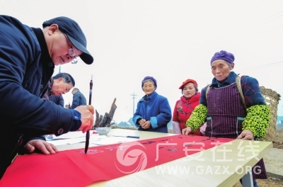 书法爱好者为贫困户写春联。吴凌 摄