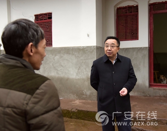 1月6日下午,岳池县县委书记郑鹏程深入白庙镇舞凤山村督导脱贫攻坚工作。郑鹏程强调,要始终坚定以习近平新时代中国特色社会主义思想为指导,把学习贯彻党的十九大精神,维护以习近平同志为核心的党中央权威和集中统一领导落实到具体行动上,进一步增强做好脱贫攻坚工作的责任感、紧迫感和使命感,念兹在兹、唯此为大,确保实现脱贫攻坚决战决胜,与全国全省一道全面建成小康社会。