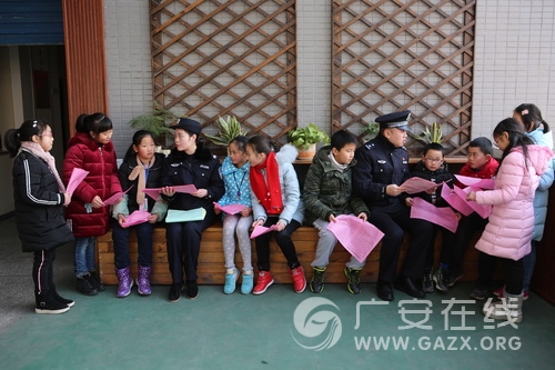 图为1月9日,广安区公安分局广福派出所民警正在思源小学向学生普及“110”报警求助常识,让学生认识公安110为民保安宁的功能,筑牢安全防线。