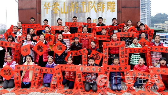 华蓥:“小书法家”上街送春联(图)